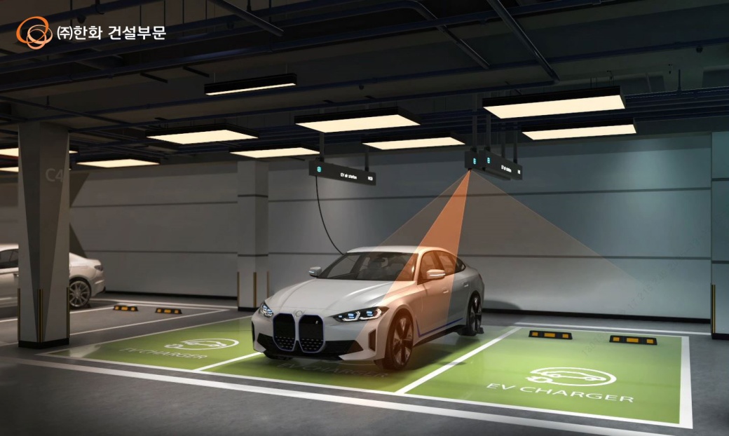 ▲ ㈜한화 건설부문 천장형 전기차 충전설비 ‘EV에어스테이션’