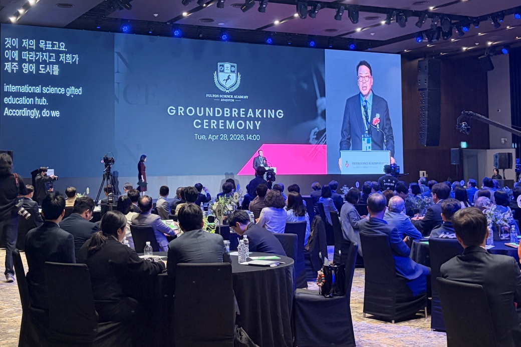 제주국제자유도시개발센터(JDC)에 따르면 ‘풀턴 사이언스 아카데미 애서튼(이하 FSAA)’은 28일 오후 2시 제주신화월드에서 기공식을 개최했다. FSAA는 미국 조지아주 애틀랜타의 명문 사립학교 ‘풀턴 사이언스 아카데미(이하 FSA)’의 첫 글로벌 캠퍼스로 STEM(과학·기술·공학·수학) 교육 중심의 이공계 특화 사립학교다.